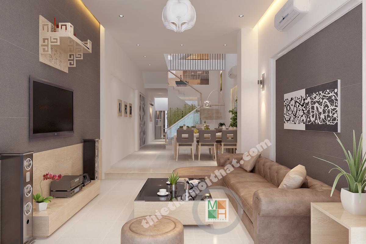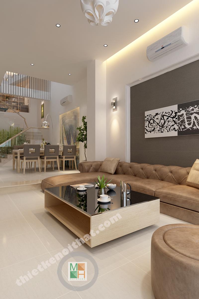 Ngôi nhà của chị Hiền tại quận Bình Thạnh là một trong những mẫu thiết kế nội thất nhà phố được các kiến trúc sư đầu tư nhiều thời gian và tâm huyết. Mang phong cách nội thất hiện đại nhưng không kém phần sang trọng. Cảm giác đầu tiên khi bước vào ngôi nhà là sự thông thoáng trong không gian sinh hoạt chung. Cửa kính trong suốt bên cạnh phòng khách giúp cho không gian này được ưu tiên diện sáng lớn.